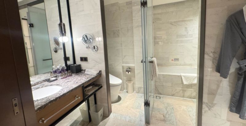 Qua voorzieningen is overal aan gedacht – van badjassen tot slippers – zodat je je meteen thuis voelt. Alleen een kleine misser van housekeeping: in de douche hing in plaats van shampoo een tweede fles conditioner. Verder is het niveau precies wat je verwacht van Conrad.