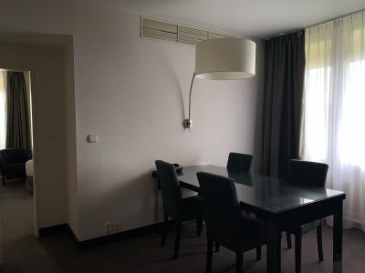 De kamer bestond uit twee apart kamers, 1 ingericht als woon / werk kamer. De tweede kamer was de slaapkamer met aangrenzende badkamer (met ligbad). De woon/werk kamer was voorzien van een groot bureau voorzien van de meest noodzakelijke aansluitingen om te kunnen werken. De bureau stoel was comfortabel. Al is hij voor een hele dag werken wellicht wat aan de lage kant in verhouding tot het bureau.