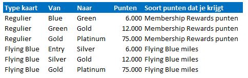 Bedenk bij het upgraden van een kaart altijd of de hogere kaart kosten opwegen tegen de extra geboden voordelen plus de punten bonus.